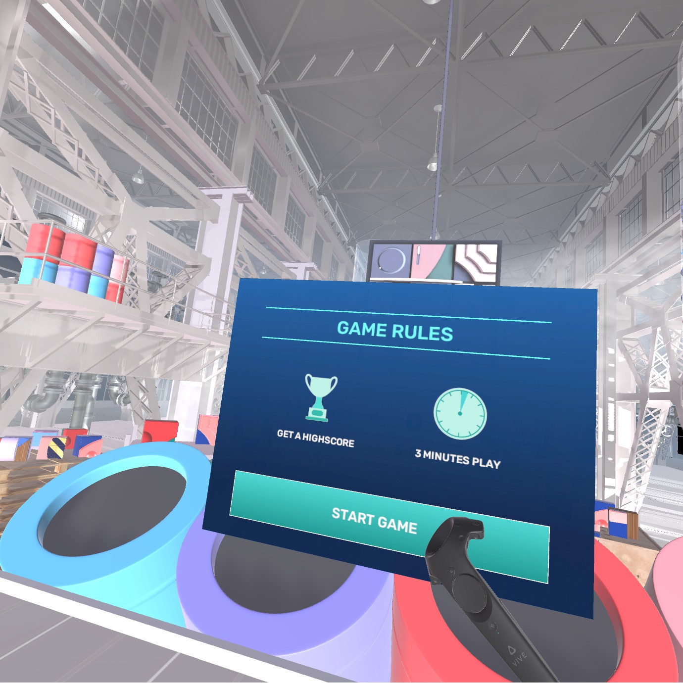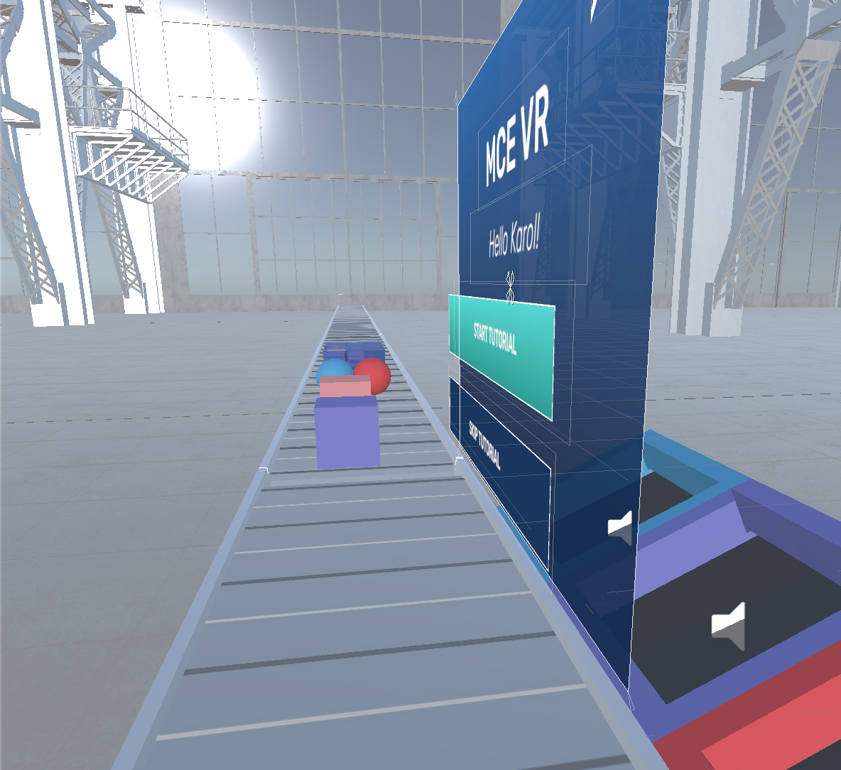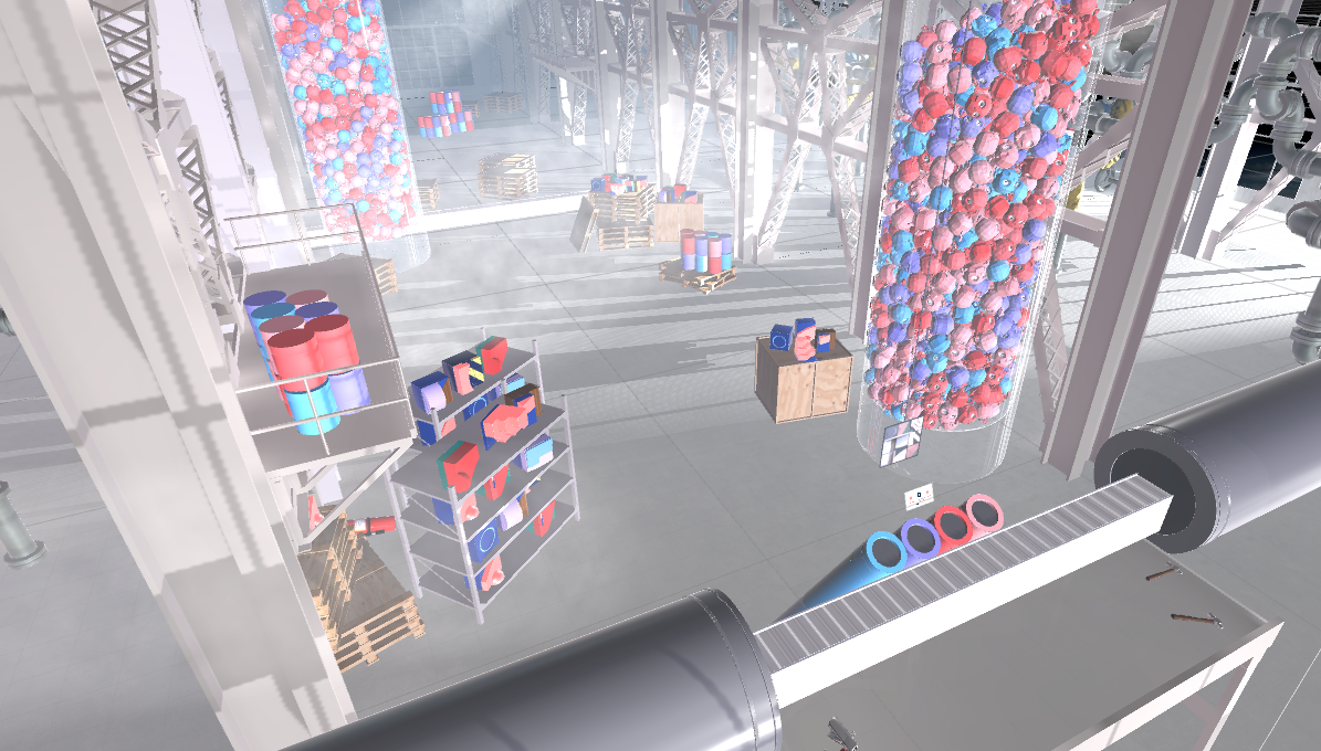 The VR environment – a spacious factory has been imported to Unity3D and redesigned to get the visual style from the moodboard.