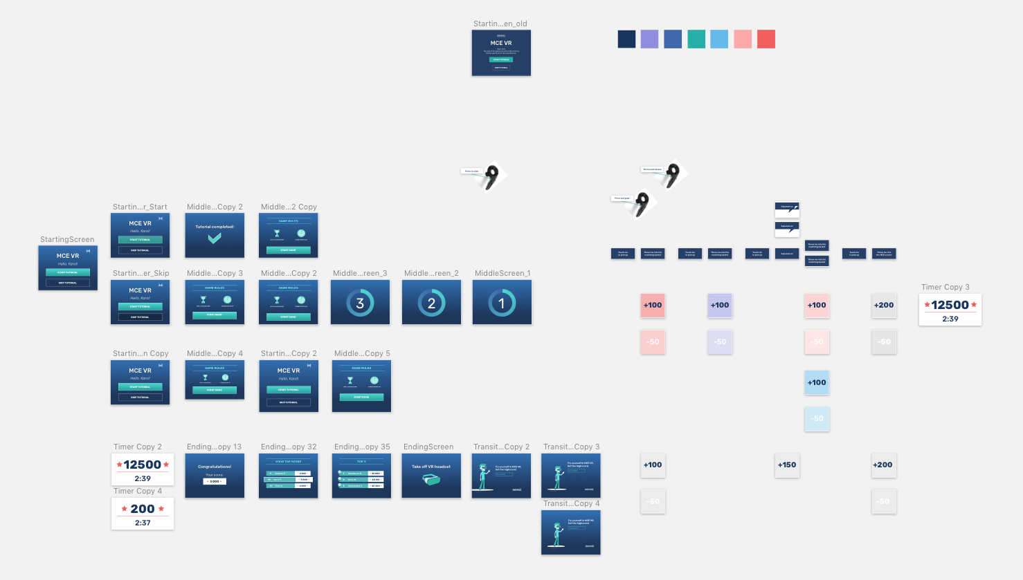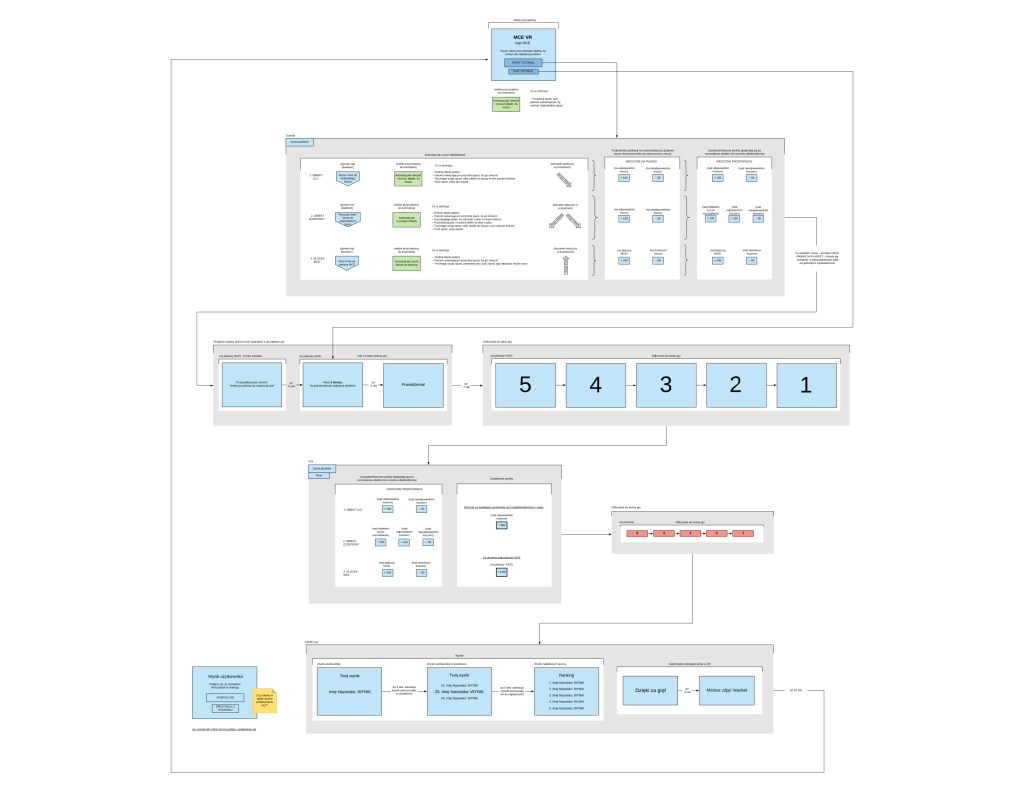 We made a User Flow diagram of the whole VR Experience to see the logic and all interactions that we need to design. We iterated and developed it further as the project progressed.