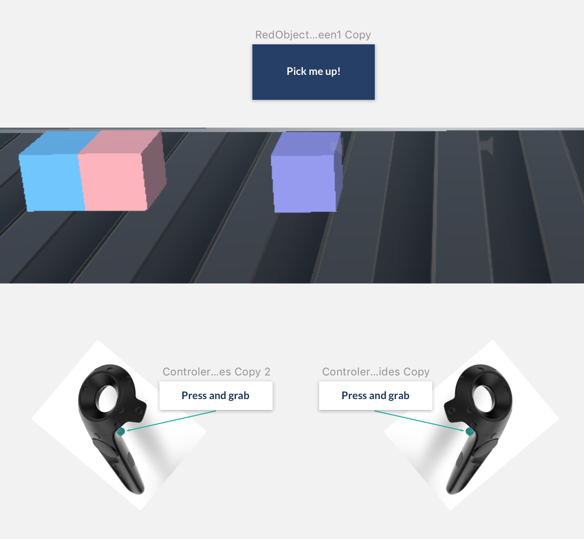 Originally, I designed them as 2D interfaces in Sketch, and later learned how to build them as 3D objects in Unity, so that a VR Engineer could easily add a code to objects in the VR environment.