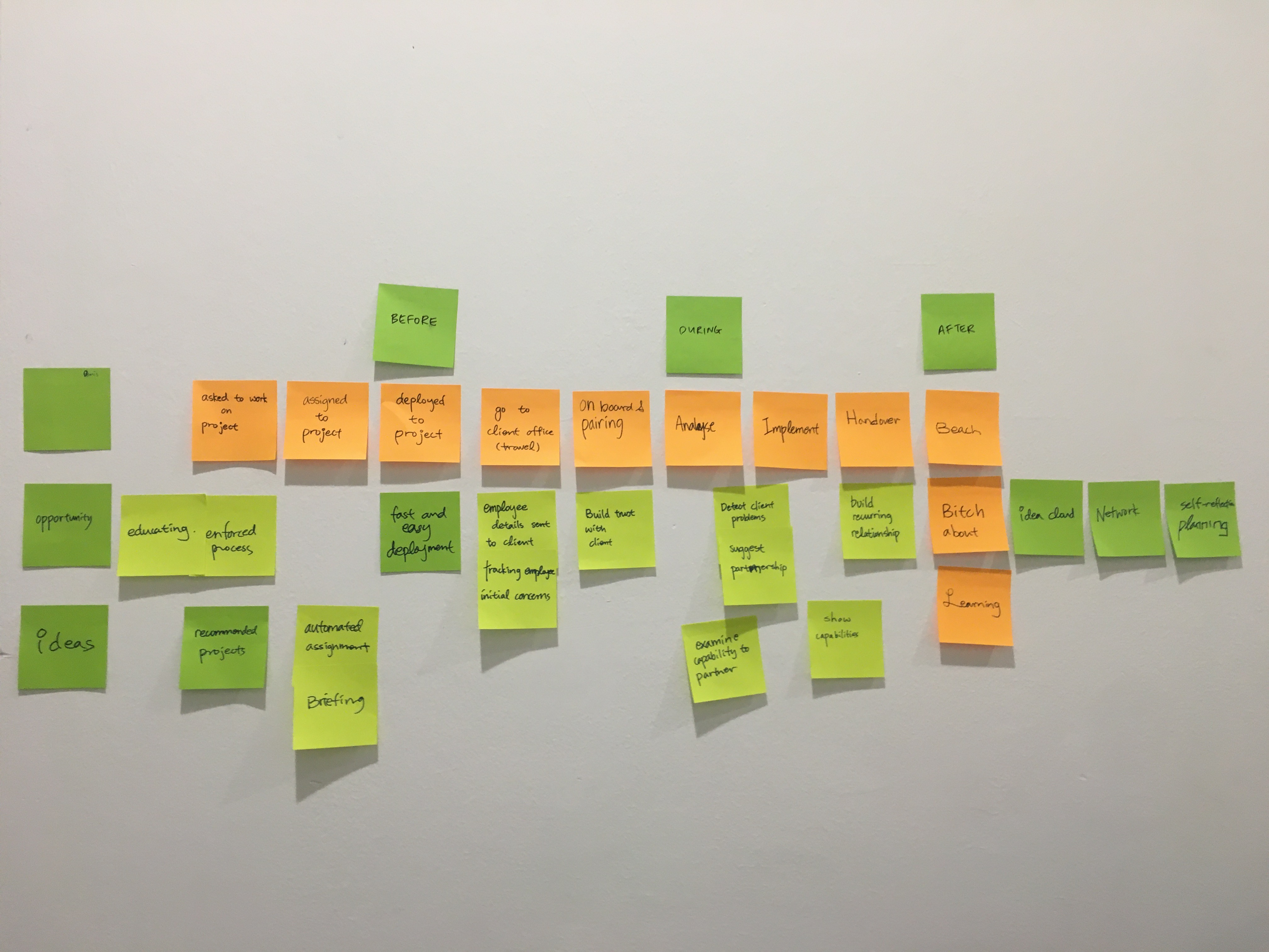 We prioritised the three main elements of a typical consultancy system to explore during sprints: Research&Innovation, People Management, Service Models. We ran sprints across these three buckets and explored some multiple concepts within each.