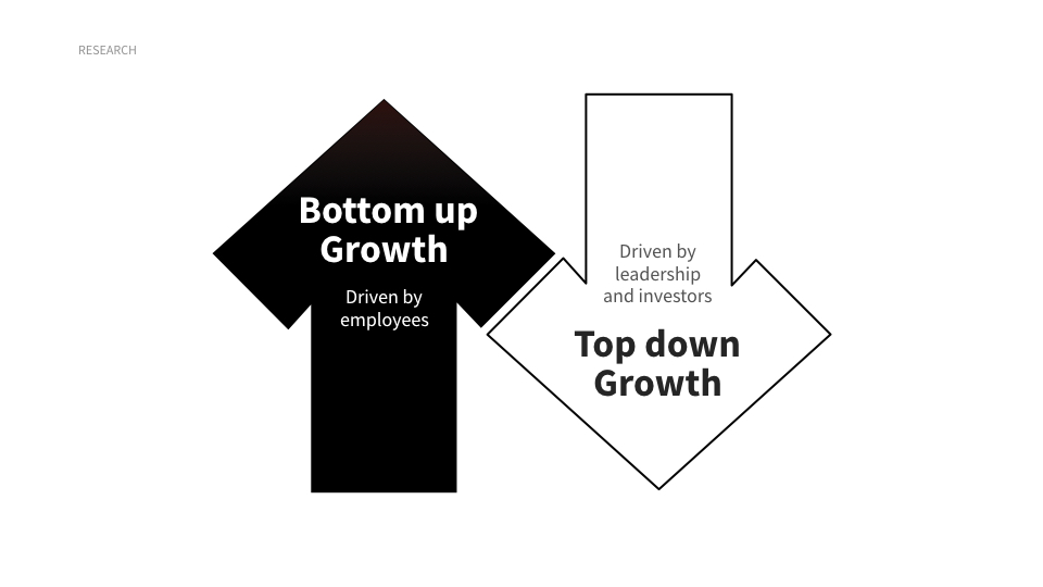 When an individual grows, the company organically growths – it is a bottom up growth. However, a company could also just grow with its employees lagging behind – which is a top down. We have identified that bottom up growth is the more sustainable way to grow and develop new capabilities and service offerings within an organisation as opposed to top down growth led by the senior management.