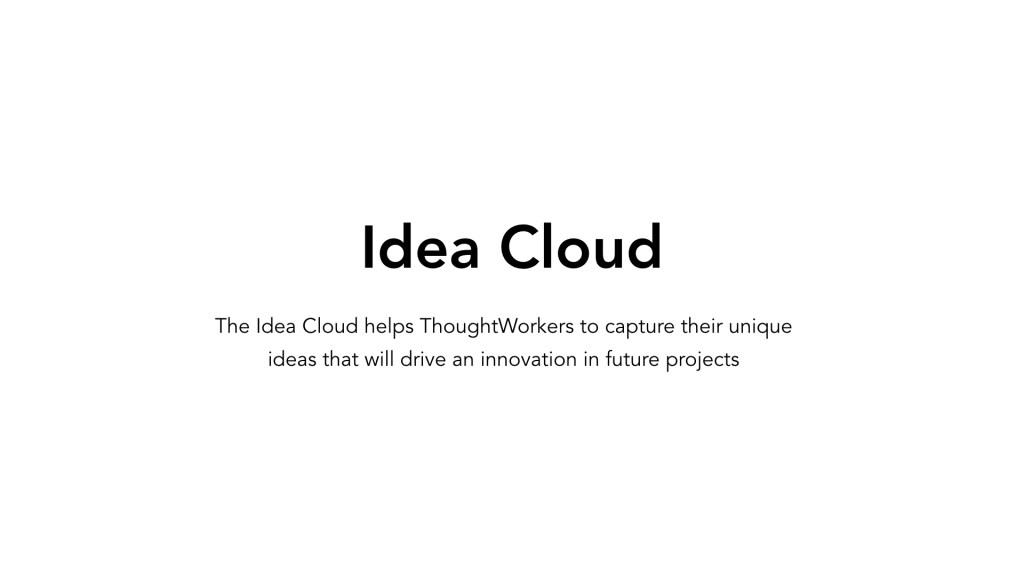 Looking at the underlying core of the ideas we developed and the research that we did, we came up with a service called – “Idea Cloud”.