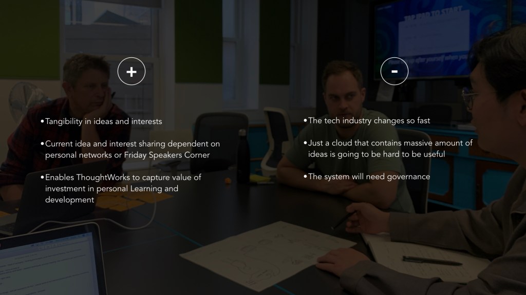 We tested the “Idea Cloud” at a workshop with ThoughtWorkers who provided positive and constructive feedback.