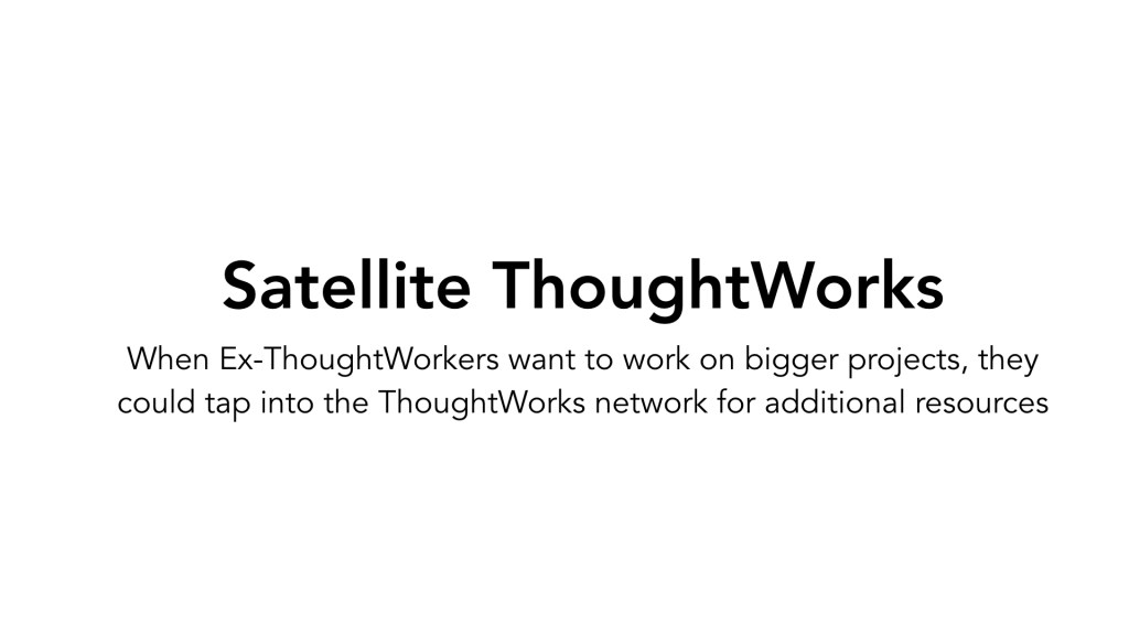 ThoughtWorks is currently not harnessing the potential of its alumni network. This is why we decided to explore a partnership model of ex-ThoughtWorkers and design a new service for that – “Satellite ThoughtWorks”.
