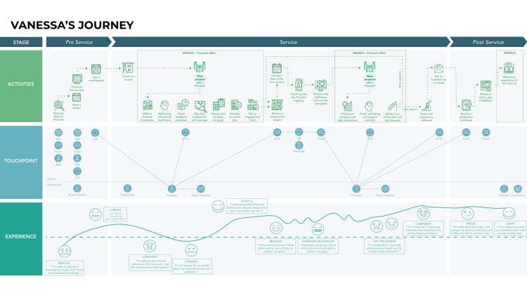 Examining all important moments in a customer’s life cycle helped us to define the key transition which happens when one becomes financially independent. At that point an individual requires financial literacy that they often lack.